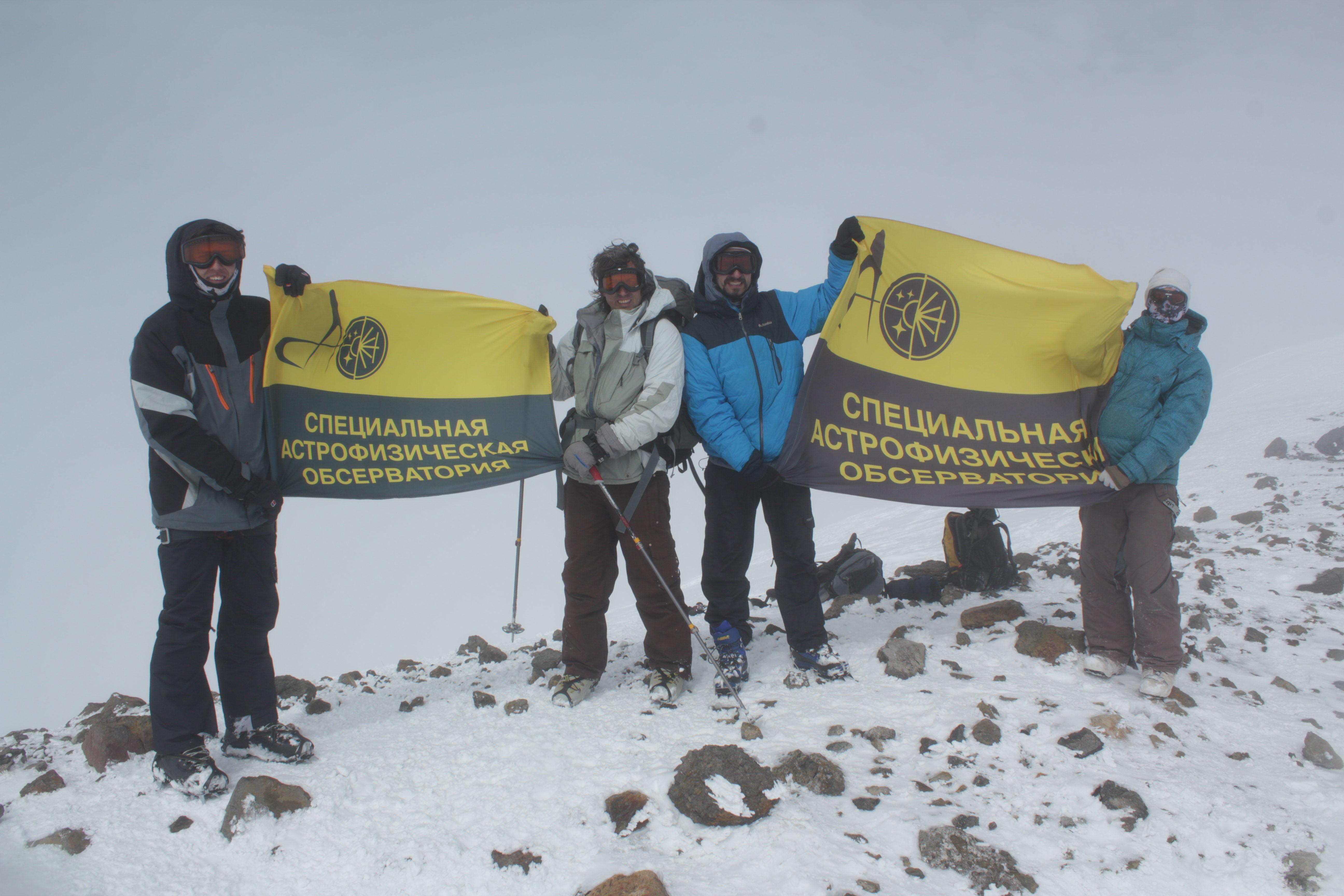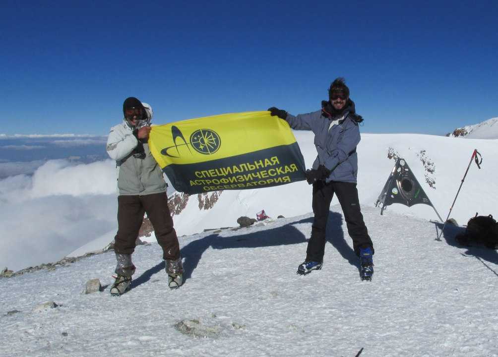 peak of Elbrus (5621 m a.s.l.) flying the observatory flags