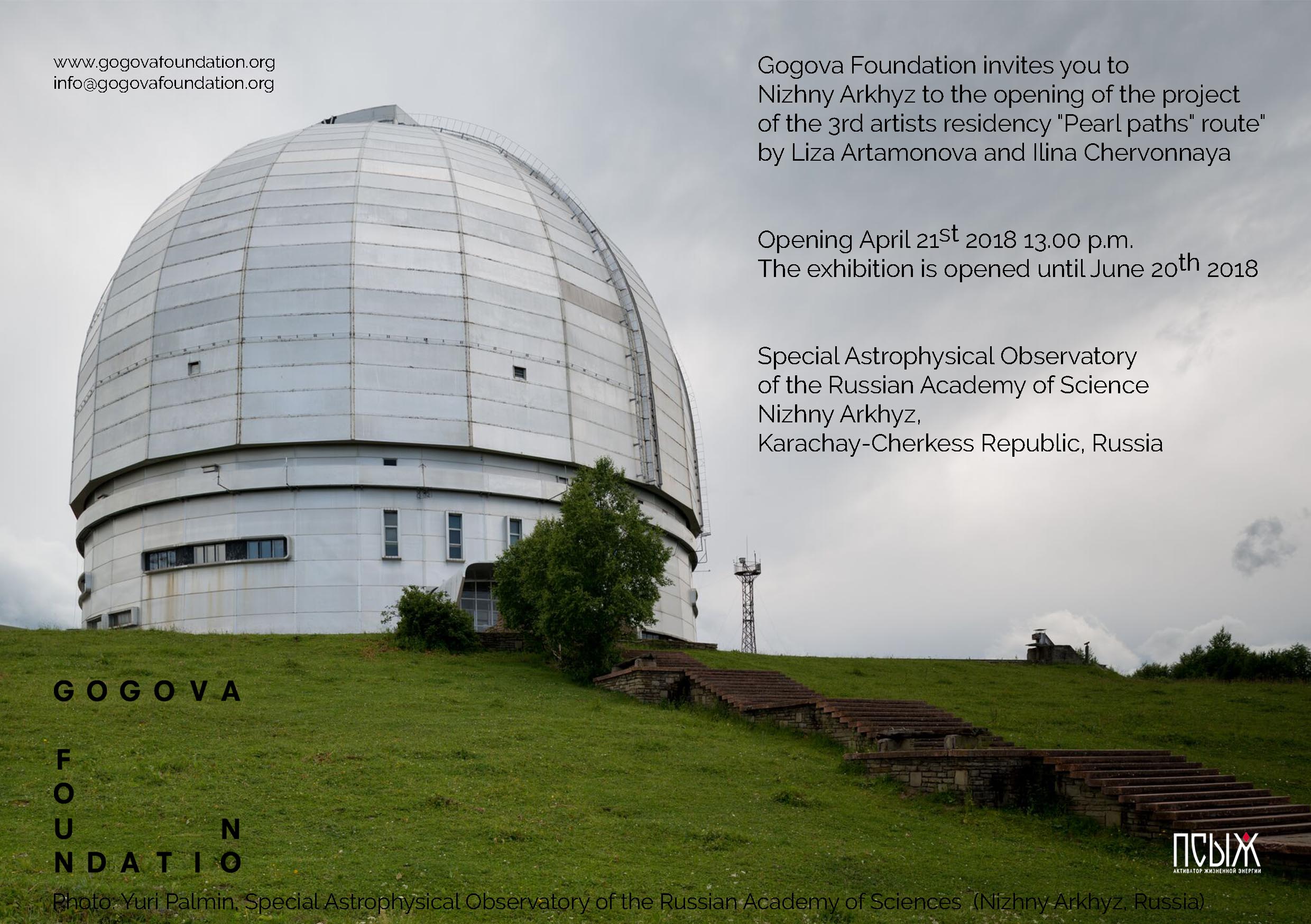 A project by the Russian artists Liza Artamonova and Ilina Chervonnaya, participants of the third Gogova Foundation Artists Residency, will be presented on 21 April 2018 at the Special Astrophysical Observatory of the Russian Academy of Sciences in Nizhny Arkhyz.