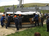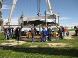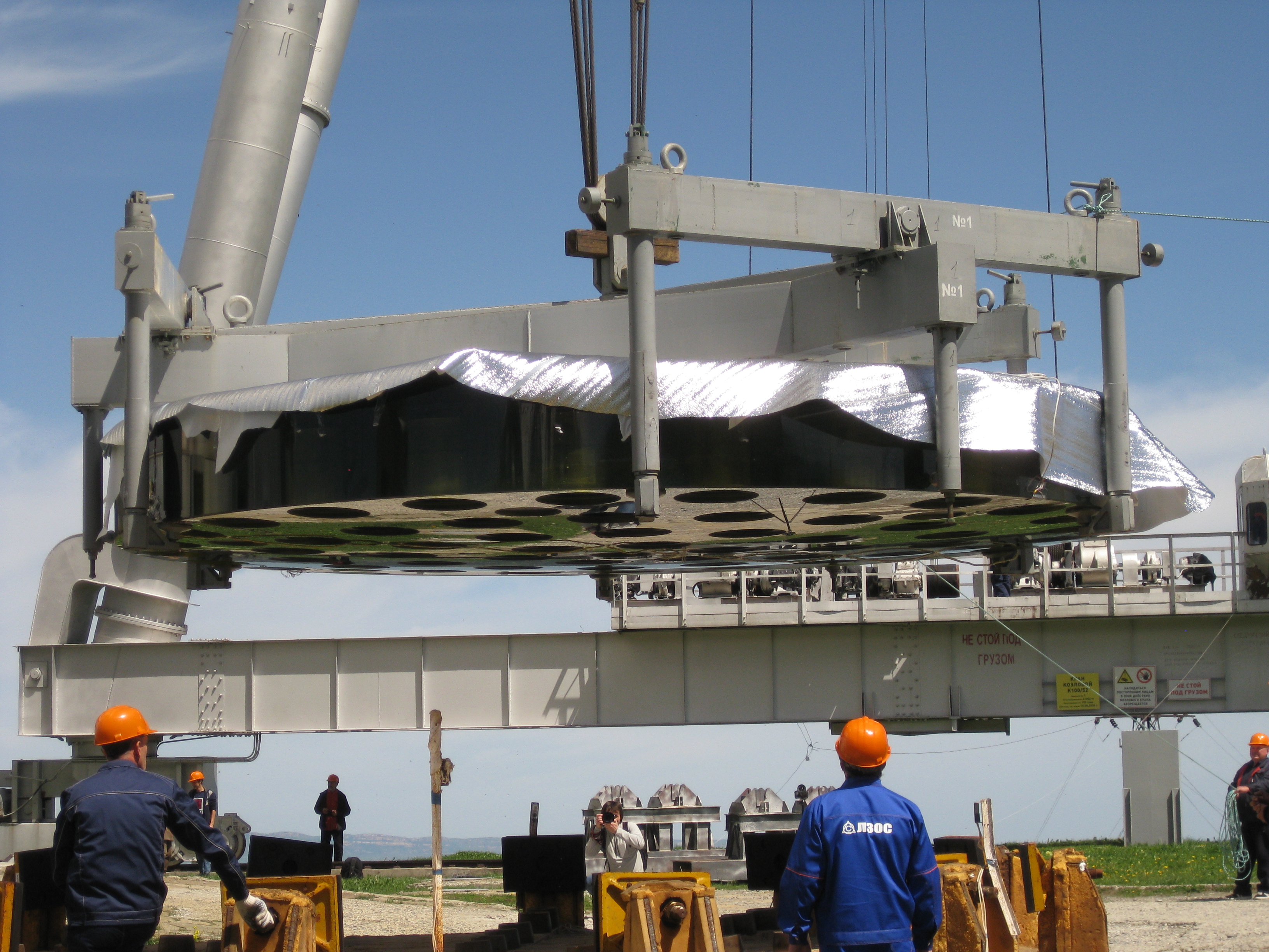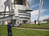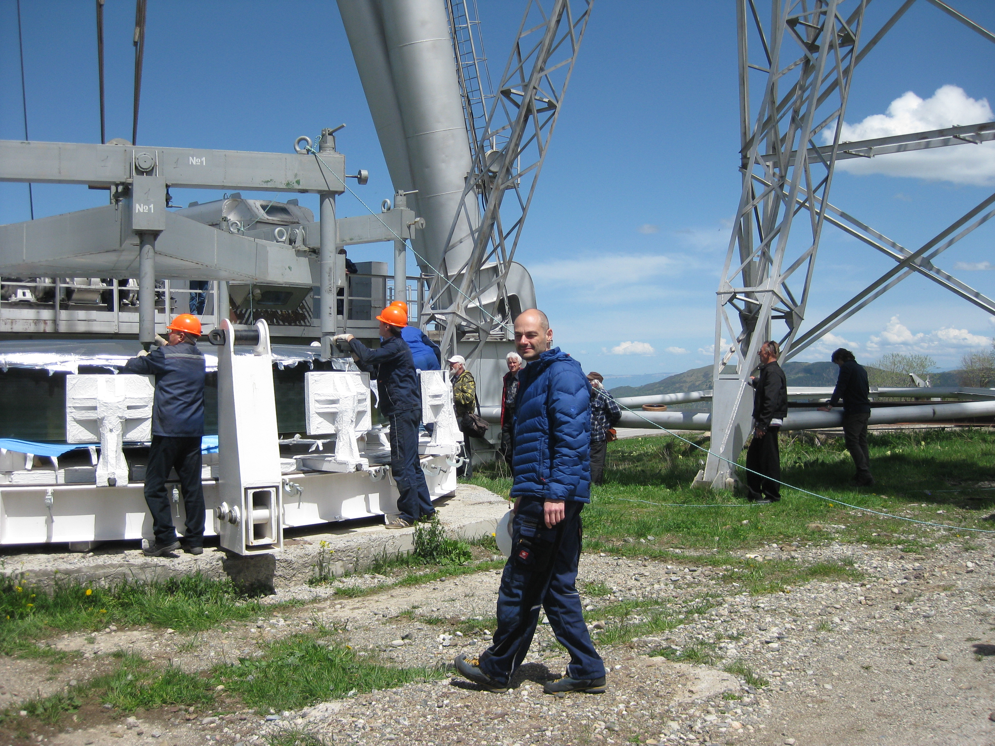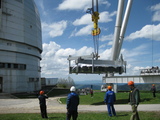 The crane was once used in Lytkarino in 2007 before transportation of the mirror and after its arrival to the observatory in February this year; however, at that time the mirror should be lifted to a small height in order to take it from the vehicle platform. For reference, its transferral to the telescope dome, as well as the whole process of the mirror replacement itself, was last time performed in 1979. As distinguished from the past years, now the operator's cabin was equipped not only with the two-way communication but also with the video broadcast from the dome.