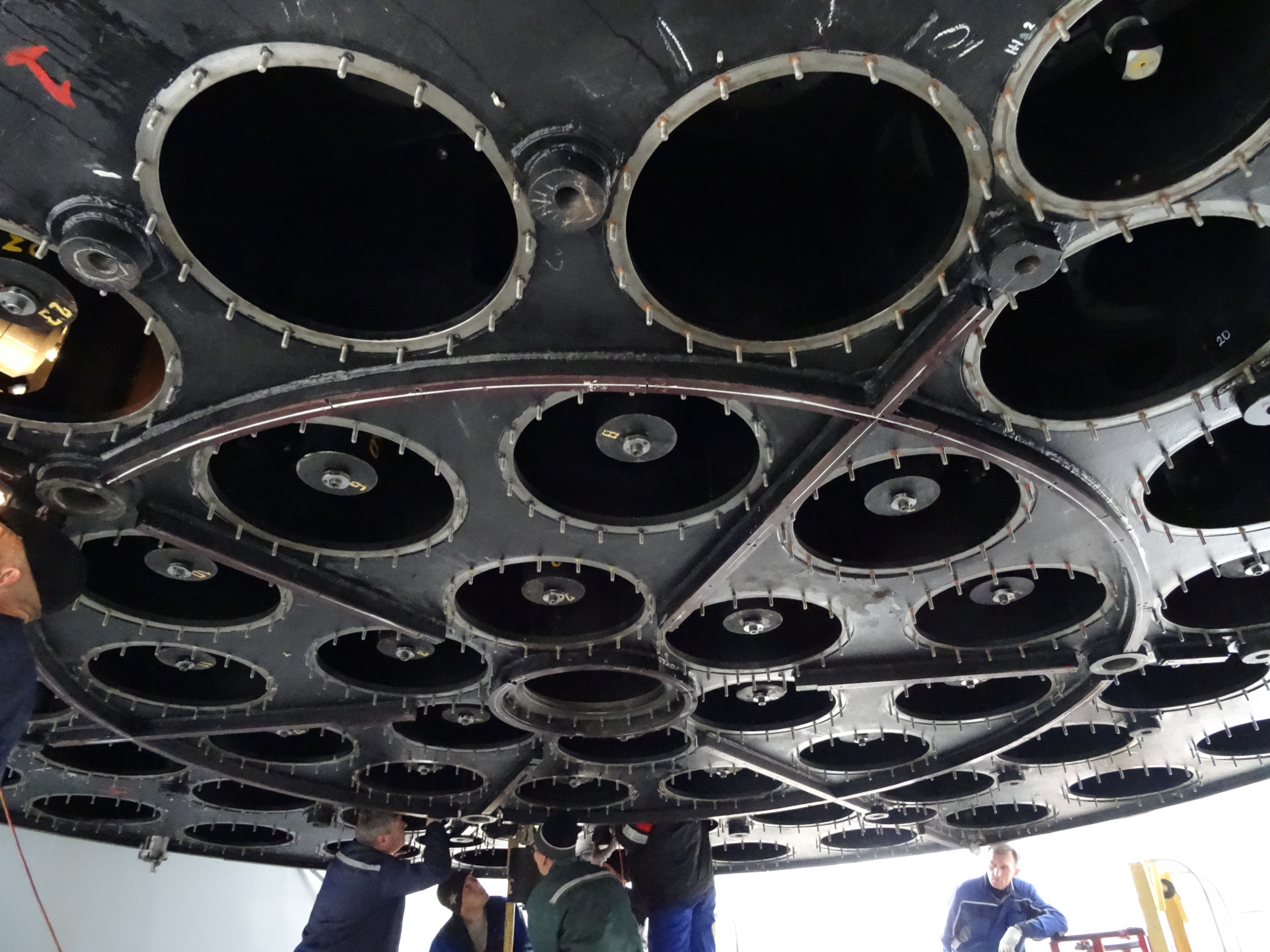 Photo: deinstallation of the mounting support of the BTA primary mirror.