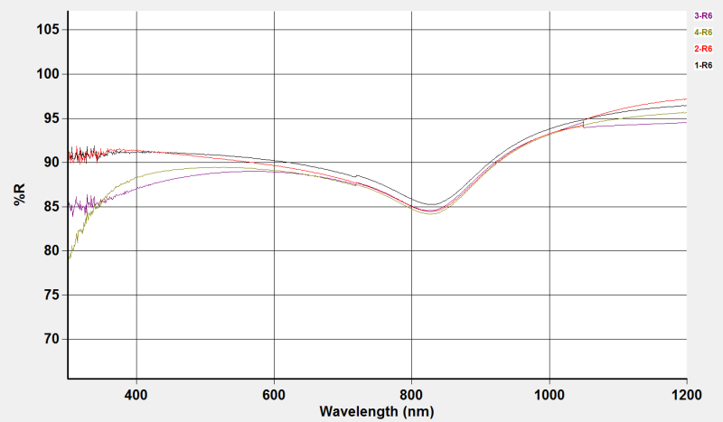 Fig.2. The reflection coefficient of witness samples measured at the Luch Scientific Production Association.