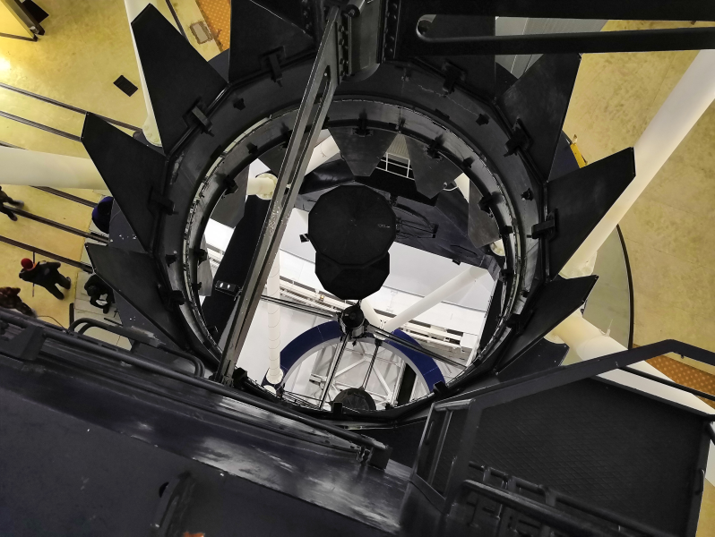 Thus, the observatory has now successfully completed all the necessary procedures for installing the refurbished mirror and measuring the characteristics of its surface. At the same time, we have to state that the quality of the surface is unsatisfactory. The main reason for this is a considerable inhomogeneity of the glass of the mirror blank, which led to unaccounted effects in the so called "band control" during mirror repolishing, when the form of the surface was controlled with the mirror being supported by a special band, without a support cell, and all the related deformations were to be calculated and took into account for further operations. As a result of the inhomogeneity, significant deviations of the surface from the paraboloid appeared after installation in the standard support cell.