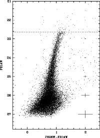 Photometric errors are indicated by the bars at the right side of the CMD.