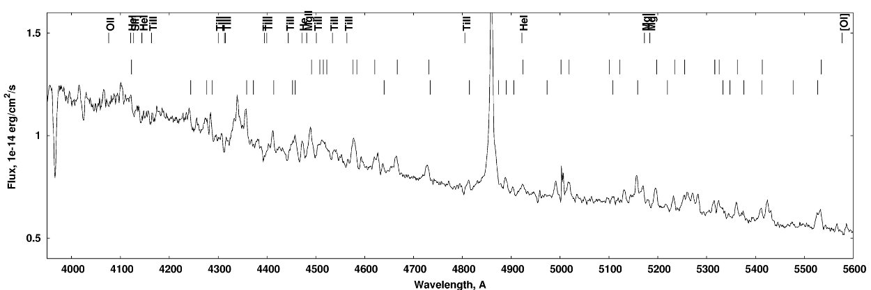 on the spectra obtained on the 6-m BTA telescope (Fig.2), is 16000 K.