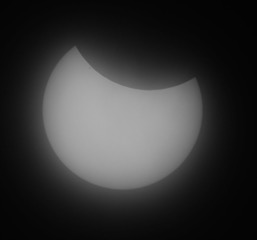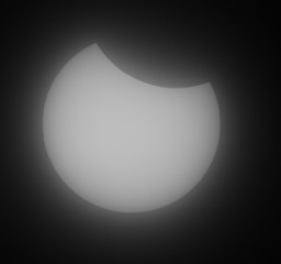 Солнечное затмение - одно из самых величественных природных явлений. Еще в начале 20 века покрытия Солнца лунным диском использовались для уникальной возможности изучения внешних слоев атмосферы нашего светила. С развитием космических исследований значение наземных наблюдений солнечных затмений для науки несколько снизилось. Тем ценнее редкие результаты, которые удается получить с использованием крупных наземных телескопов. В основном это радиотелескопы, так как даже частные фазы затмения не являются серьезной проблемой при наблюдении солнечной поверхности в радиодиапазоне, а Луна используется в качестве природного экрана, заслоняющего "менее" интересные активные области Солнца. Так, например, было в марте 2006 г., когда фаза полного затмения проходила через нашу обсерваторию в месте установки оптического телескопа БТА. Крупнейший в своем классе радиотелескоп РАТАН-600 в тот момент оказался вне полосы лунной тени на самом ее краю. Тем самым нашим ученым удалось провести ряд интересных исследований северной околополярной области Солнца, не закрытой лунным диском, изучив ее слабое радиоизлучение, которое обычно тонет в общем потоке радиоизлучения Солнца. Похожим образом РАТАН-600 был использован и во время частного затмения 20 марта 2015 г. (см. здесь). Визуальным наблюдениям Солнца 20 марта мешала облачность. Тем не менее, нам удалось получить несколько фотографий через телескоп производства Synta Sky-Watcher с диаметром объектива 200 мм.