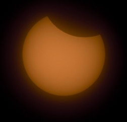 Солнечное затмение 20 марта 2015 г. в САО РАН вблизи максимальной фазы. Снято автором на фотоаппарат Canon EOS 450D через телескоп Synta Sky-Watcher SKP2001 (F=1000 мм, D=200 мм).