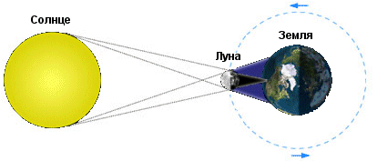 Затмение Солнца (или солнечное затмение) может произойти только в новолуние, когда Луна проходит между Землей и Солнцем. Если тень Луны падает на поверхность Земли, некоторая часть диска Солнца закрывается или "затмевается" Луной. Так как новолуние происходит каждые 29,5 дней, можно было бы ожидать, что солнечные затмения должны происходить каждый месяц. Но этого не происходит, потому что орбита, по которой Луна движется вокруг Земли, наклонена примерно на 5 градусов к орбите Земли. В результате, тень от Луны в новолуние обычно падает мимо Земли, либо выше, либо ниже нашей планеты. Но по крайней мере два раза в год, когда Луна пересекает плоскость эклиптики (в т.н. узлах лунной орбиты) и некоторая часть тени Луны падает на поверхность Земли, в каком-то районе Земли можно наблюдать затмение Солнца. Таким образом, серии затмений происходят с полугодовым интервалом.