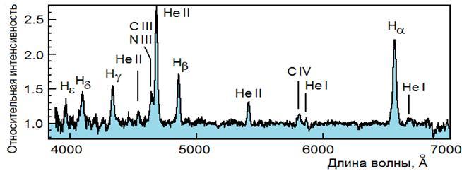 линии He II на длинах волн 4200, 4542 и 5412 Å. В спектре хорошо