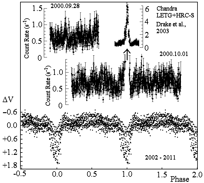 большая рентгеновская вспышка, отмеченная вертикальной стрелкой, произошла