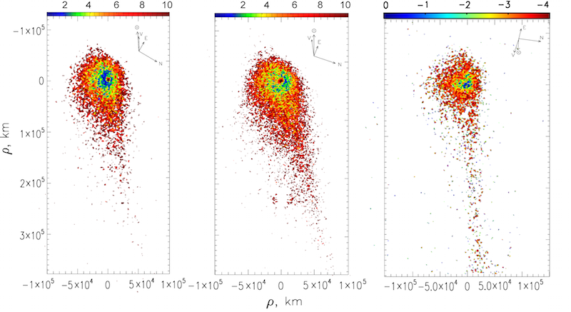 расстояниях от кометного ядра, также подтверждает наши результаты о наличии