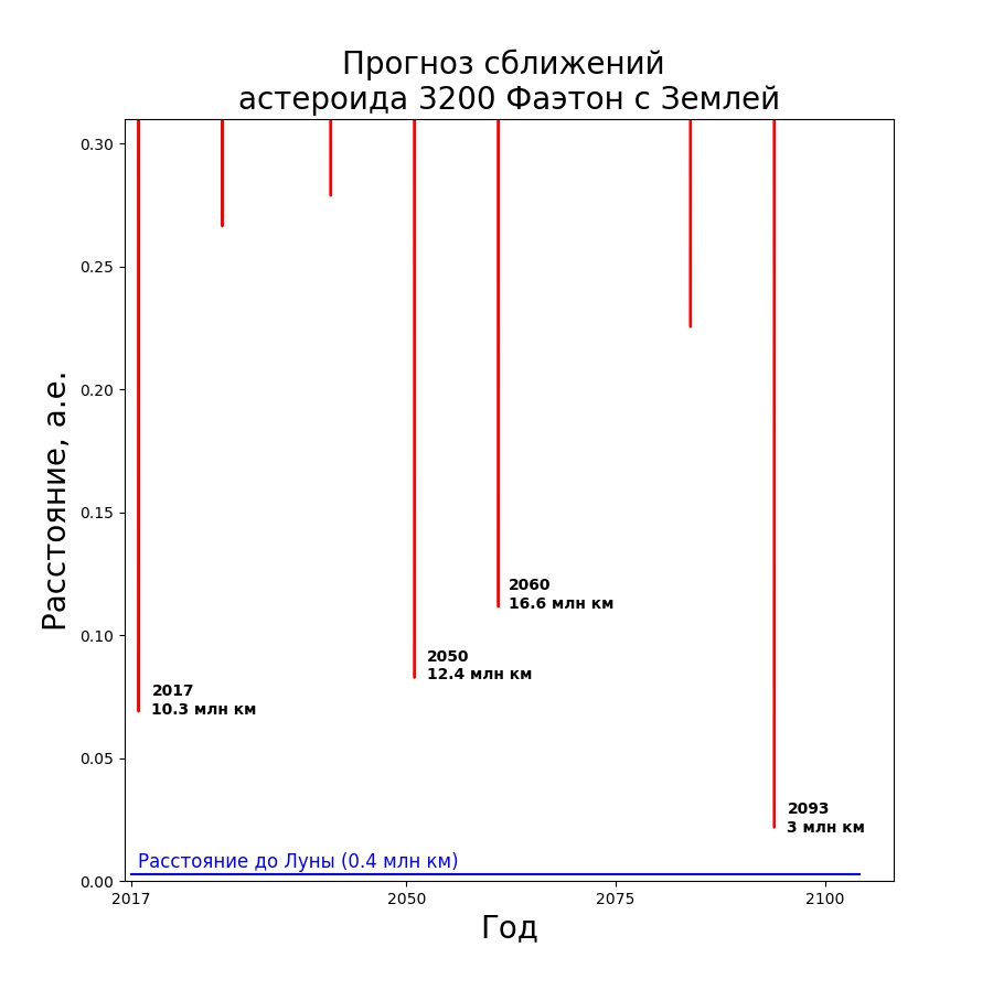 произойдут в 2050 и 2060 годах. Ближе Фаэтон окажется к Земле только в