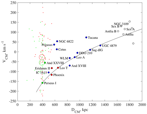 Рис. 1. Поток Хаббла в Местной Группе. Вид из барицентра системы.