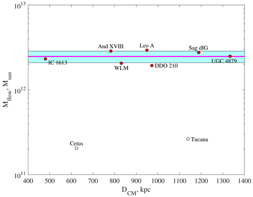 Рис. 2. Оценки полной массы Местной Группы по падению индивидуальных галактик.