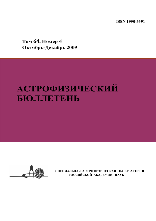 Том 64, номер 4. Астрофизический бюллетень. Октябрь — декабрь 2009 г.