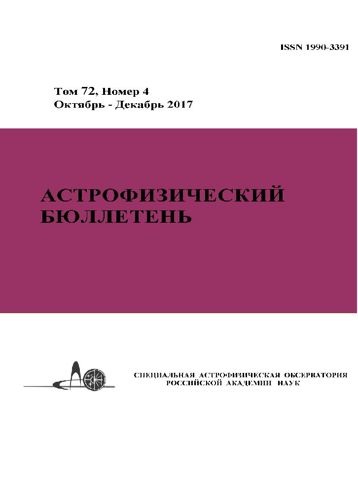 Том 72, номер 4. Астрофизический бюллетень. Октябрь — декабрь 2017 г.
