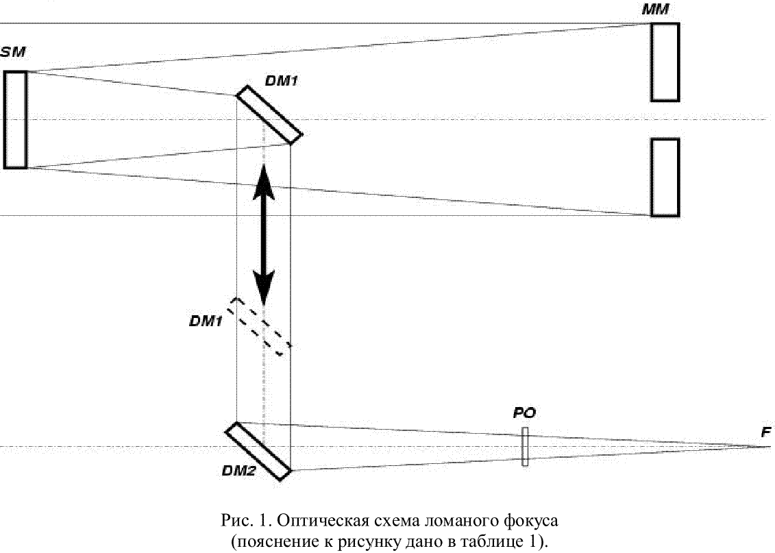 эллиптической формы зеркало DM1 вводится в пучок и крепится там