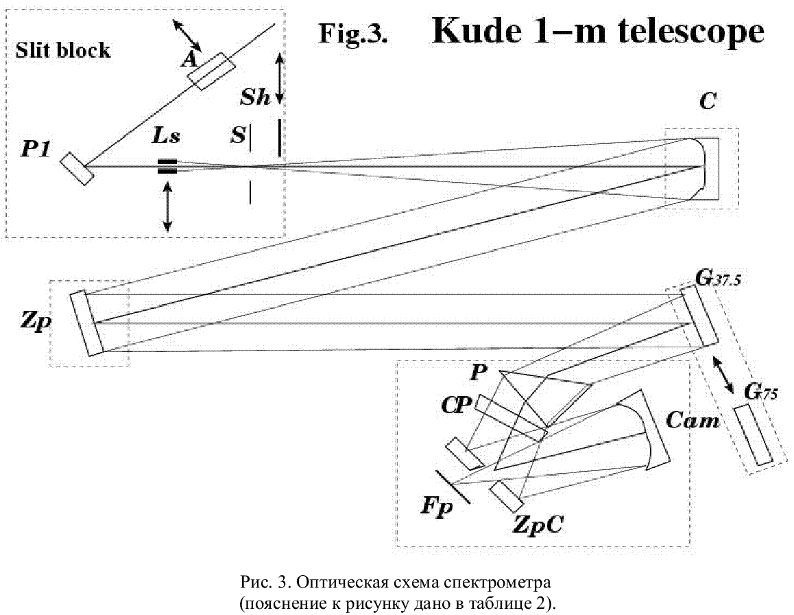 Дополнительные сведения об АЦП: разведение изображений – 2.3 мм или 13.2"; рабочий интервал длин волн от 3300А до 9000A (более подробную информацию об АЦП CEGS телескопа Цейсс-1000 можно найти в работе В. Д. Бычкова [2]).