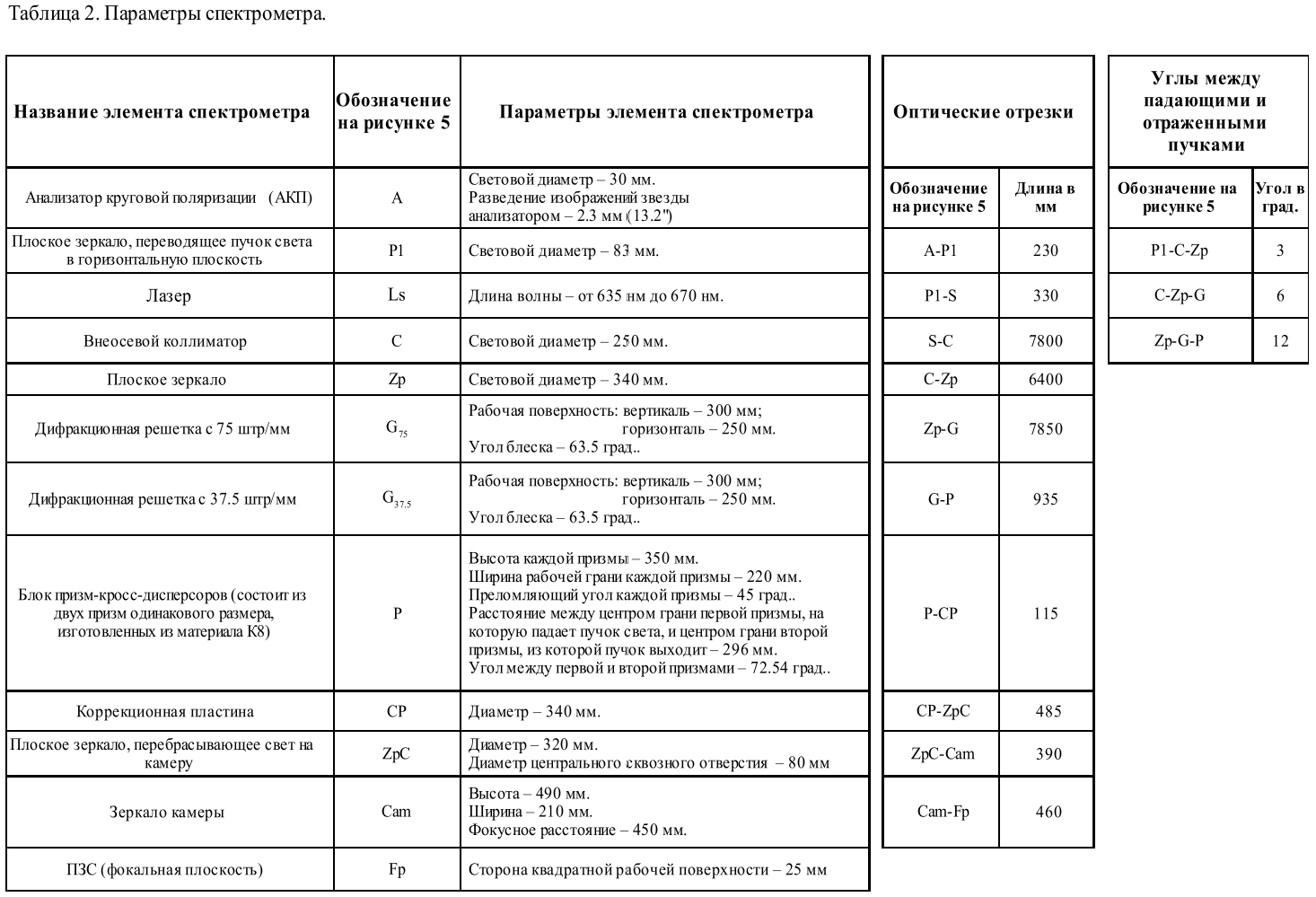 1 Угол gamma должен быть близок к 12º, в противном случае возникают потери света на призмах – часть света проходит мимо; угол alfa должен быть близок к углу блеска дифракционной решётки (для данных решёток с 75 штр/мм и 37.5 штр/мм этот угол составляет 63.5º), в противном случае возникнут большие потери света на штрихах решётки.